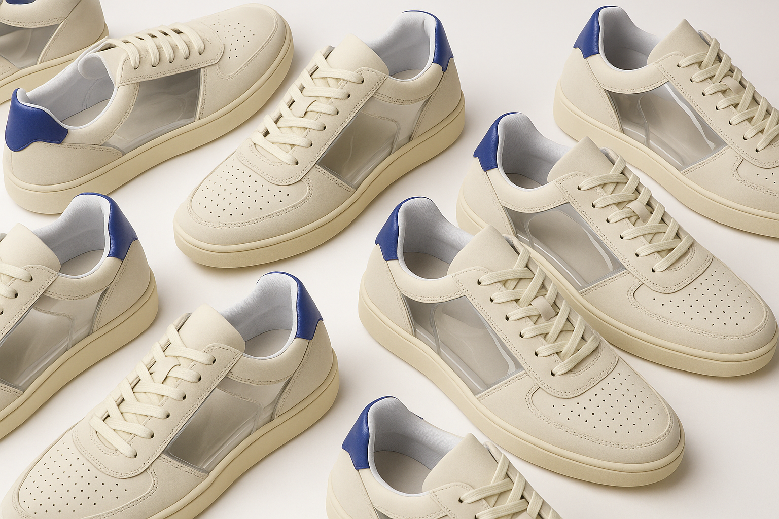 We craft minimalist footwear that embodies personal expression, featuring a sleek design and signature transparent side panels.