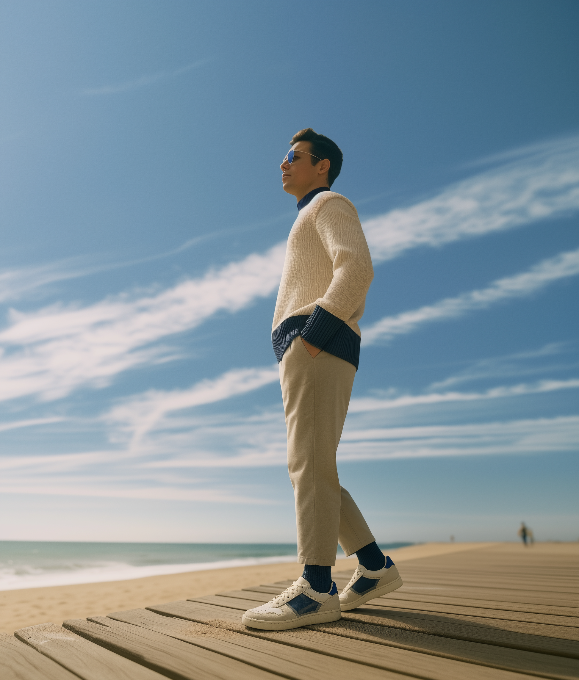 - Premium off-white leather with suede trim